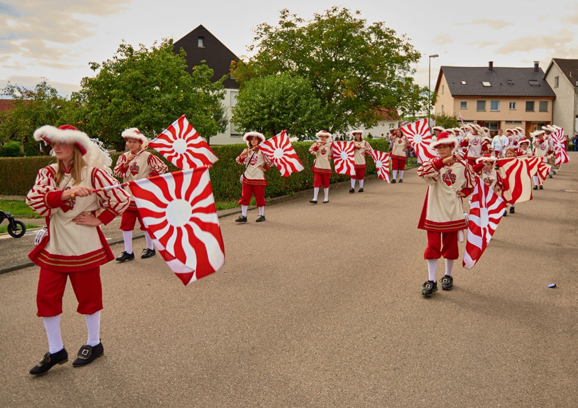Am vergangenen Sonntag nahmen wir am Umzug zum Weinfest in Erzingen teil. Bei schönem Wetter begann der Umzug um 14,00 Uhr. Bereits als 6. Gruppe marschierten wir durch die Straßen von Erzingen. Eine große Zuschauermenge säumte den Weg um den Umzug mit den vielen schön dekorierten Festwagen zu sehen. Es war toll wieder einmal an einem Brauchtumsumzug teilzunehmen.